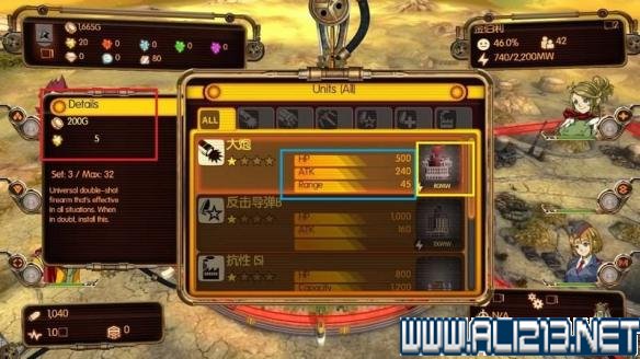 下方黄框则是提升道具,可以用来提升操作手的能力,比如攻击频率、伤害和射程等。