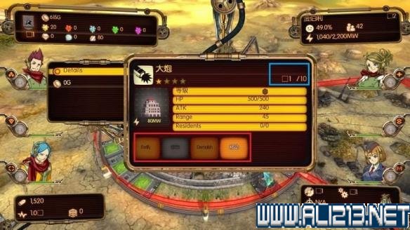 本作特色是作为塔防区域的城市堡垒分为多个城市圈。