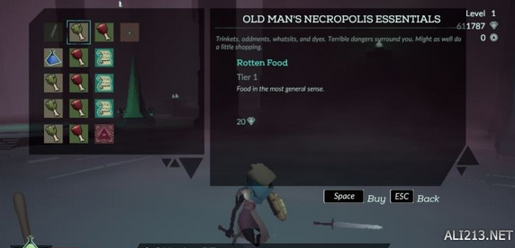 此外注意,道具并不是只能在商店中购买,在游戏中破坏罐子、打开宝箱或者击杀敌人的时候,都有一定的几率可以获得掉落的各种道具以及武器。另外击杀的敌人在死亡时,手上的武器会掉落在地上,走进后按下键盘上的E键可以捡起地上的武器使用,但是之前装备的武器会丢掉,游戏前期高攻速的武器收益非常高,因此建议大家舍弃长剑,前期用攻速高的蓝色匕首,或者是蛇形匕首都可以。