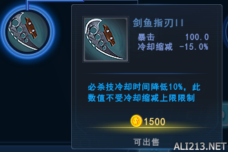 剑鱼指刃l l 减少大招CD且不受上限限制挺好的 同样和另一件主动技能为一段时间小技能百分百暴击相比 这件装备出完你的暴击率基本是100还有的溢出 对于没有出韧性装的输出来说已经算是全程暴击 出装顺序②-1-1-1 衣服(3号位置):