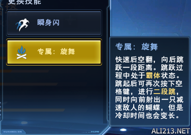 从一个通用和专属选择一个 个人推荐专属 而且基本所有塔塔都选的专属sp 一段位置调整位置 短CD 二段位移距离较长并且附带正前方一次附加减速的攻击 生存能力进一步提高 缺点就是只能向后移动 R技能