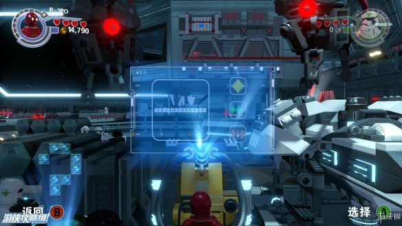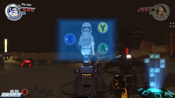Part1:开始的位置,会遇到垃圾桶什么的,总共击败4个之后会获得一定奖励。然后两个人在下方推动一些积木铺路,可以抄一些近路。之后会遇到一个需要红色机器人才能控制的机器,所以要继续向前,从墙上拉出一块积木之后,到达对面,用积木拼出闹钟,红色机器人RR-3PO之后,在拉下那边的积木,就可以铺成一条完整的路了,让R-3PO给飞行艇充电,解密顺序是132。然后飞船失控,撞开了一条路。