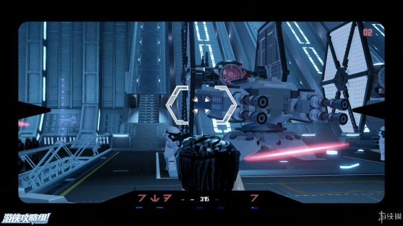 Part2:路上会有小部分敌人,还有一些积木,向中间合一拼成到达对面的桥,拿到红色积木。然后先向右侧搭仪器,可以到达窗户位置,来回两次拉下面板,然后向左搭建激光炮攻击露出的位置,这样就可以到达控制室,清理里面的敌人之后,获得战机的控制权。