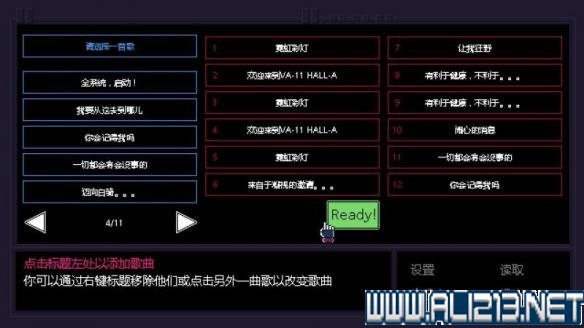 酒吧内的歌曲由玩家去安排,目录一共有12个位置,玩家可以安排12首歌,然后点击“准备”按钮即可。