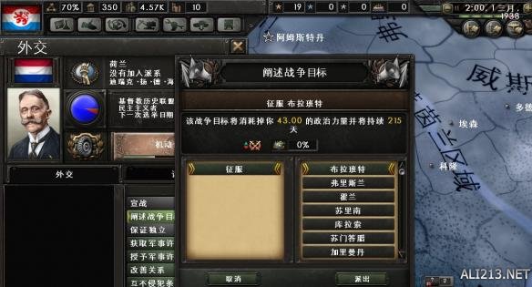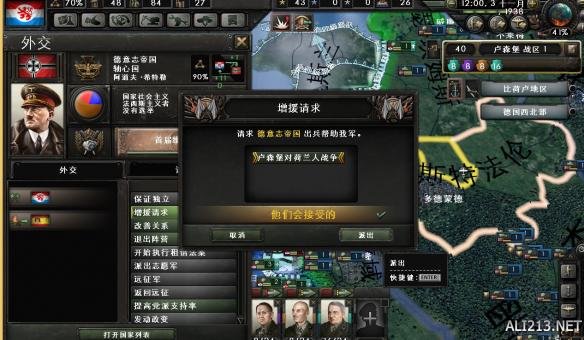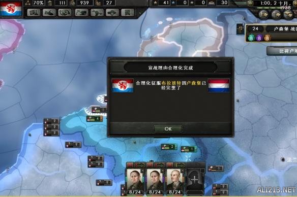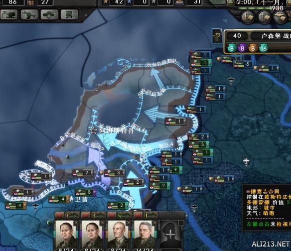 回到正题,11月1日,正式对荷兰作战。为了从德国一线发动攻势,记得要求德国出兵。否则你是无法从荷兰-德国边境线上发动攻势的。
