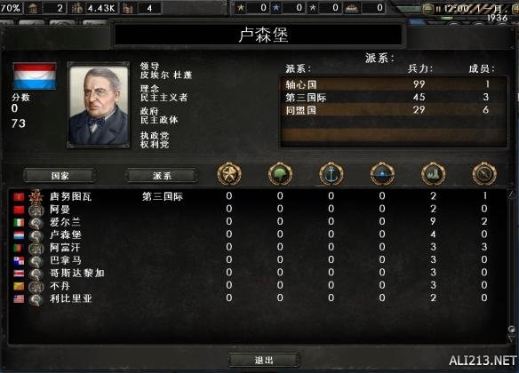选择卢森堡开局,首先,这个国家基础极差:1936年剧本,1军用工厂3民用工厂0部队,默认人力上限4K+,实力排名全球倒数。其次,这个国家外交和地理环境尴尬,夹在德法之间。如果你什么都不做,4年后,德国在路过比利时的时候,就会被顺便占领
