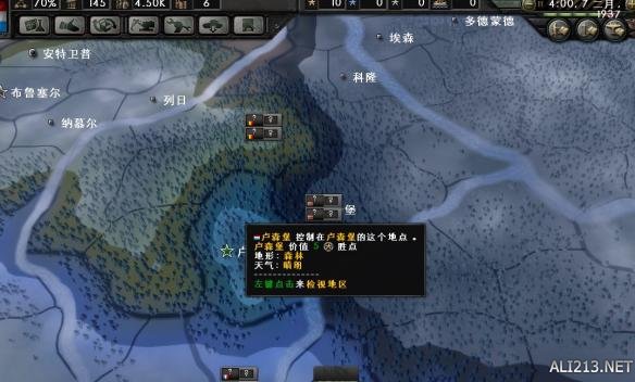 可以看到战斗位消耗1.5的火炮装备,多200人力,战斗力有着明显的提升。但是支援位也有支援位的优势,首先消耗火炮少,对于卢森堡这种产能不够的国家来说这很重要。其次不吃任何地形惩罚。让我们看一下卢森堡周围的环境: