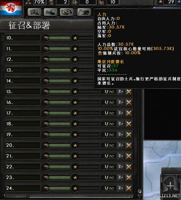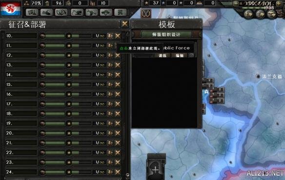 训练度20%就可以全部下线并取消建造列表了。申请加入轴心国,新部队单独设一个集团军,将部队部署在荷兰-德国边境。