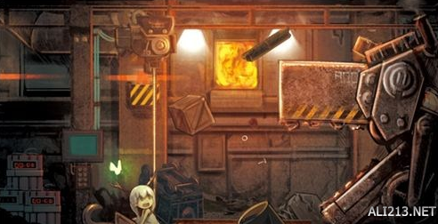 在无人的设施里永久运作的铁块。在废墟里有各种巨大的机械阻挡少女的前进。