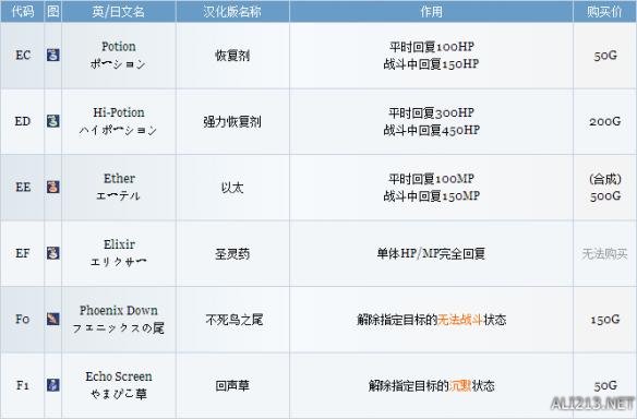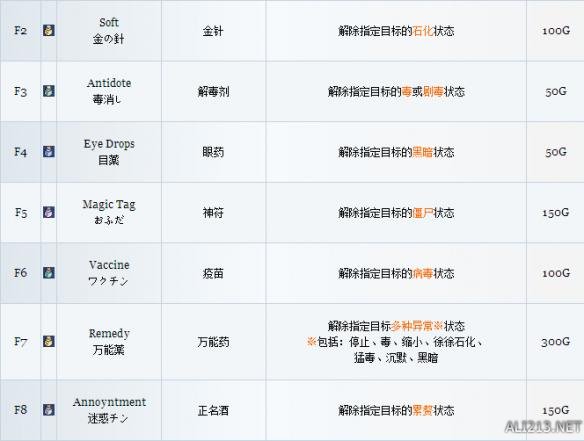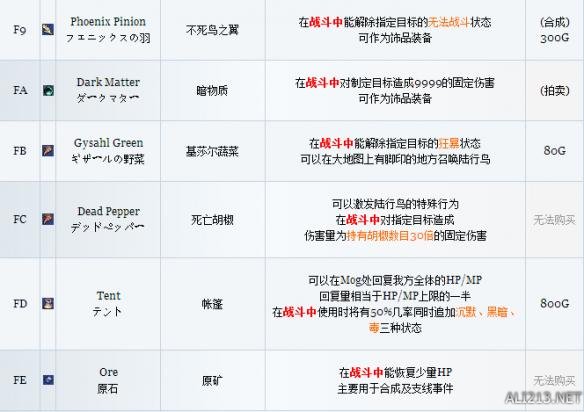 《最终幻想9》中有哪些道具呢?下面小编带来《最终幻想9》道具列表一览,一起来看吧。