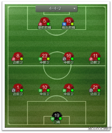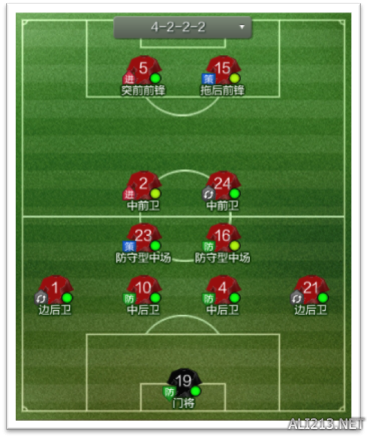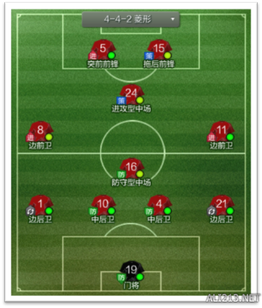 4-4-2 菱形中场是对前腰要求很高的阵型,前腰进攻、组织能力稍强于自身防守能力,而 后腰的防守、调度能力稍强于自身的进攻能力。