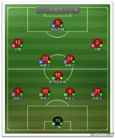 缺点:菱形站位强调中路进攻,适合阵地战,所以在推进速度上较平行站位有所不及。
