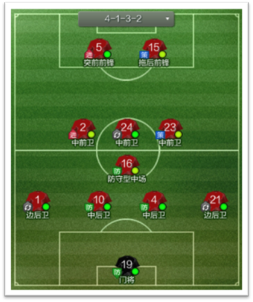 4-1-3-2这是阵型4-4-2的变形,即中场4人不再平行站位,而是3人突前,1人拖后,其中突前3人,有一位核心,既能拿球,护球,又能传威胁球和插上进攻。另2人可以称之为边锋,他们既可以中路内切,也可以边路突破,再加上4上的2个边后卫,绝对是进攻的利器。