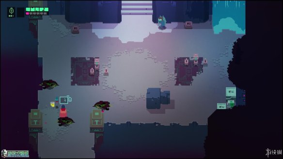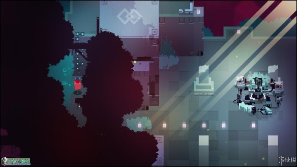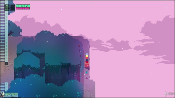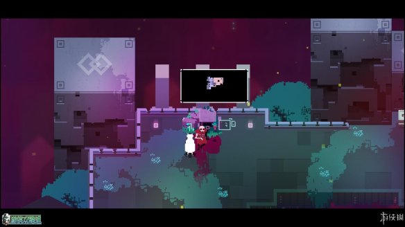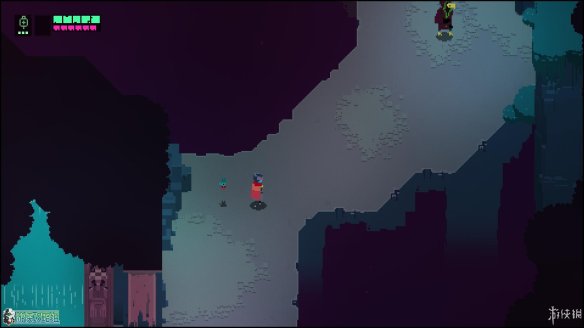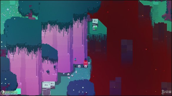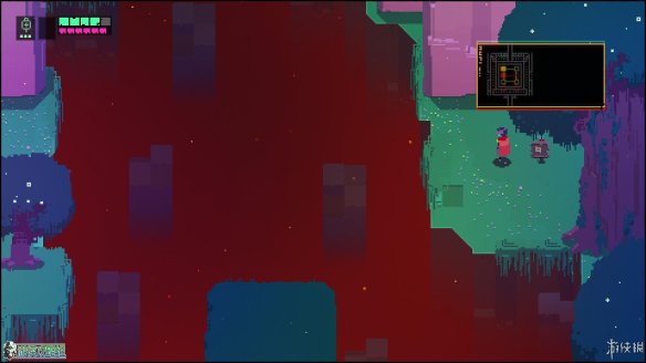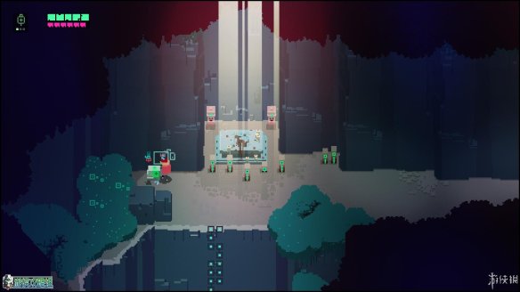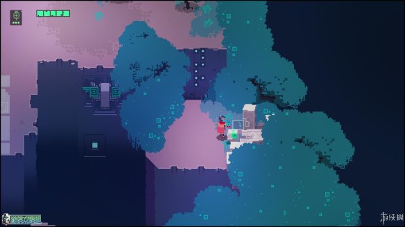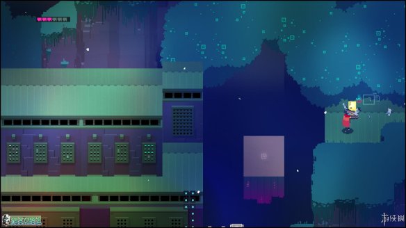 出城镇的第一个区域,这个区域没有敌人(除了一只呆萌的小蜘蛛),但可以在东边找到一个缺口,利用冲刺跨越几个缺口后,可以在如图的位置找到一块用于升级的芯片。