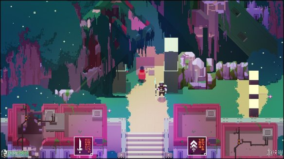这一段就是游戏的教程,操作我们之前已经介绍了,这边不多赘述。往南一直走,可以看到一个向下的平台,踩上平台后互动即可进入下层。