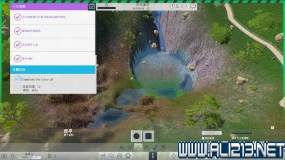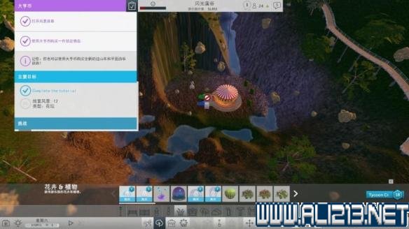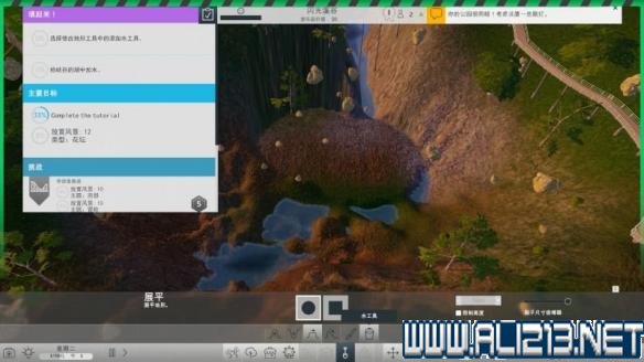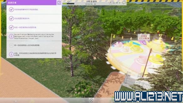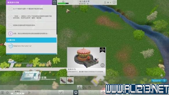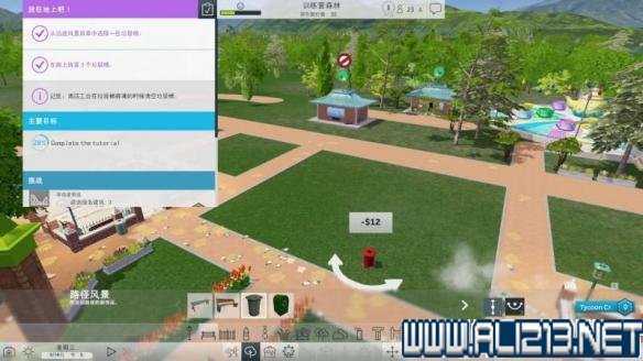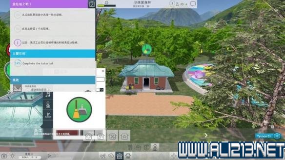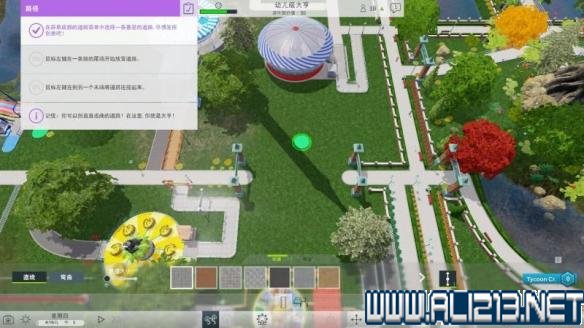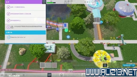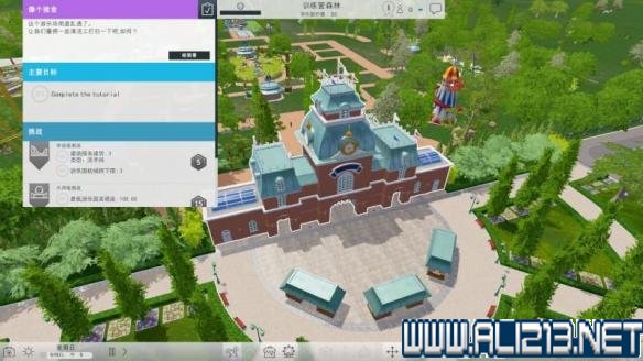 顶部栏:目标,屏幕顶部打钩的手写板就是你当前乐园的目标,当中包含任务提示以及挑战提示,完成它们可以获得大亨币以解锁项目。