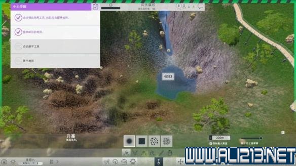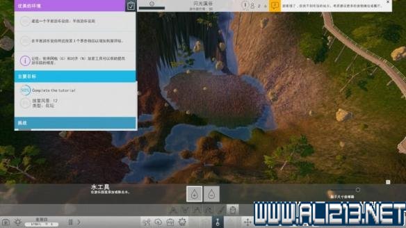 选择地形工具来调整地形,你亦可以对该地形中添加碎石和水源。