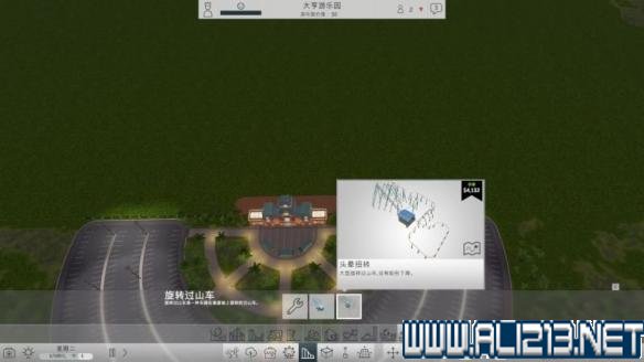 建造栏,当中包含建造道路、商店、饰物、机动游戏、过山车和地形改造、删除等功能。
