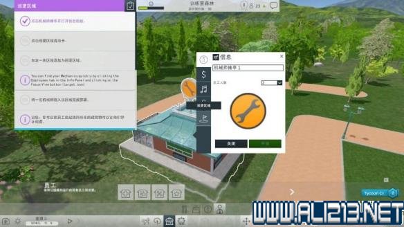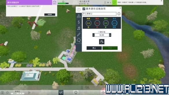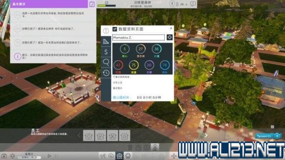 财务和游客满意度:查看该设施的游客满意度(每小时游人数、总游客数、满意度、人气度)、财务(每小时收入、每小时的运营成本、每小时利润、总累积利润)。