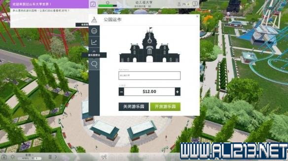 信息:更改公园的名称、修改公园入场价、可以选择关闭游乐园或开放游乐园。