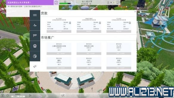 贷款与市场推广:可以向银行、集团、财团进行贷款;市场推广可以通过各类主题设施来进行宣传活动。