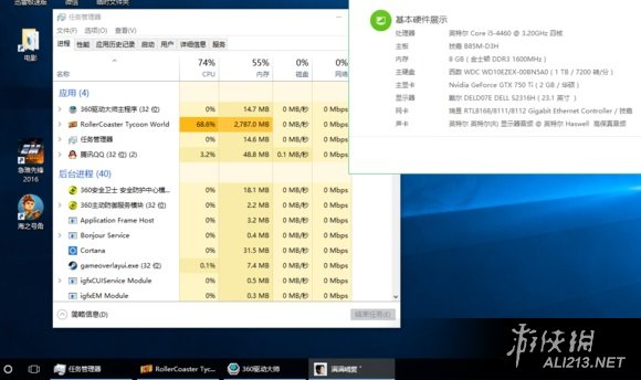 首先,大家最关心的内存占用率问题,以下是我的电脑配置和电脑内存占用情况和游乐园的数据!