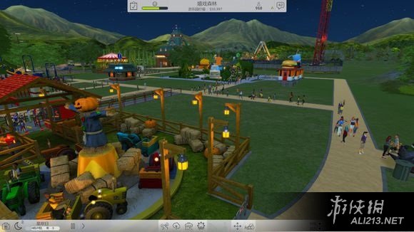 以下是刚刚的截图,12个游乐设施,18个商店,900多的游客!