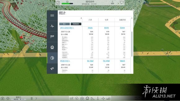 然后就是字库XXX的问题,对于我这种是经营党来说是致命伤,从1代到3代,玩过山车大亨系列都是喜欢有目标性的游戏,从开始的没钱,贷款,游客快乐-100,到游客满意度提高,每个月的赤字变成盈利,公园变大,乐园整洁,成为大亨!