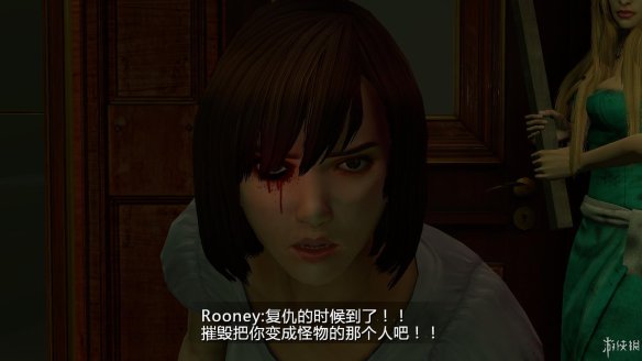 选择得到的那枚义眼,和女主的头部互动。下定决心还生存下去的rooney,毁掉了自己的眼睛,然后装上了义眼,命令剪刀怪去手刃那个把他制作成怪物的人。