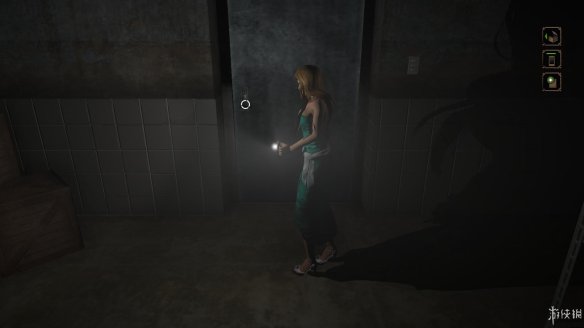8,现在可以去到另外一间绿门的暗房子里,就是女主自己的房间啦,之前由于没有灯光不敢进入,但是在手机灯光开启的状态下,就可以触发进入了。进入房间后,房间内的电话响起,是主角朋友打来的,她同样正在被恐怖的剪刀怪物追杀。向主角求救,两人约定在楼上见面。