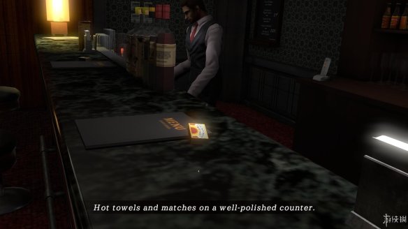 在吧台上找到火柴盒,得到火柴后会显示在屏幕右上角的物品栏中(别点击的太快,有物品栏显示不出来的BUG)。