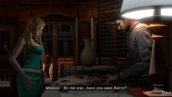 1,鼠标控制角色走向服务台的男服务员点击对话,多次对话后女主首先是和他闲聊两句,而后询问他是否知道自己朋友harry的去向。