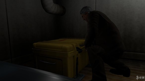调查尽头处的黄色箱子,发现一个应急用的救生艇,但是还没有充气。回到两名船员那里后继续对话,触发剧情,两名服务生开始准备给救生艇充气,同时教授和两名服务生一起开始向远边的小岛登陆。