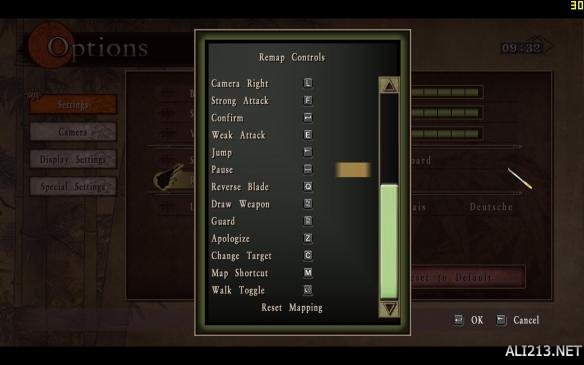 拔刀改成R,防御改成T,跳跃改成空格,暂停改成ESC,这样就比较符合大众PC动作游戏的操作风格。