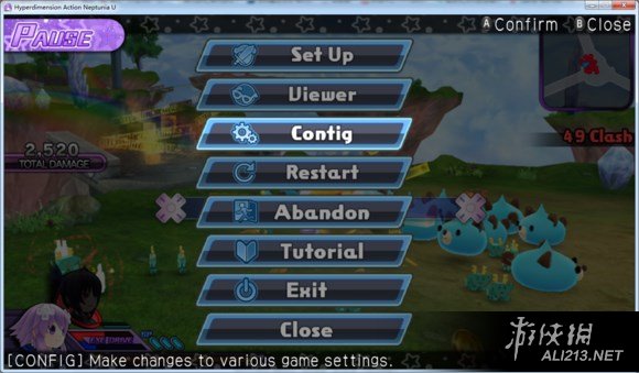 在游戏主界面或者战斗中点START,选取CONFIG