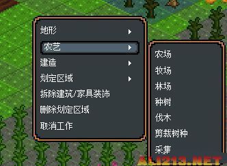 农业包括棉花、小麦、水果。棉花以后主要用于制作床,需求量不是很大,再加上地图中本身包含很多野生棉花,所以保持基本供应即可,一般10×10格左右。小麦和水果比较重要,生产面包、水果酒等吃喝物资基本就靠这俩东西了。畜牧业最初只是给我们提供了两头牛(一公一母),设定一下区间可以生产牛奶和新的牛。林业非常重要,因为后期地图那么一点木材基本是不够用的。树苗也很容易获取,直接把地图上的裁剪树种就有了。注意苹果树要先采集苹果,然后再裁剪。这里提一下,作物和畜牧业成长是很缓慢的,一般7~10天左右才会见到效果,所以不要太着急。