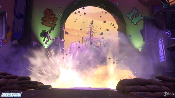 但是僵尸乐园的大门被一个巨型僵尸挡住了,正在这时天上一连串闪电将这个大门炸开了