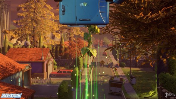 而在一个房屋的门口一棵向日葵从地下生长了出来,同时也被四周的警报发现
