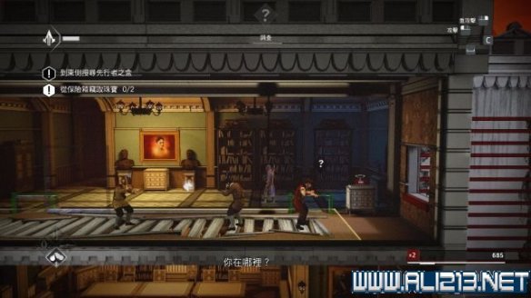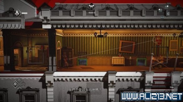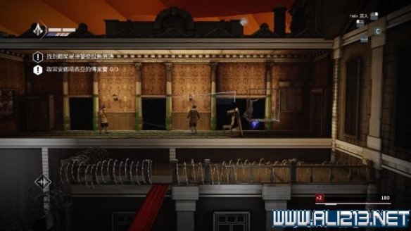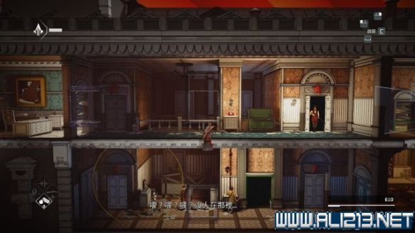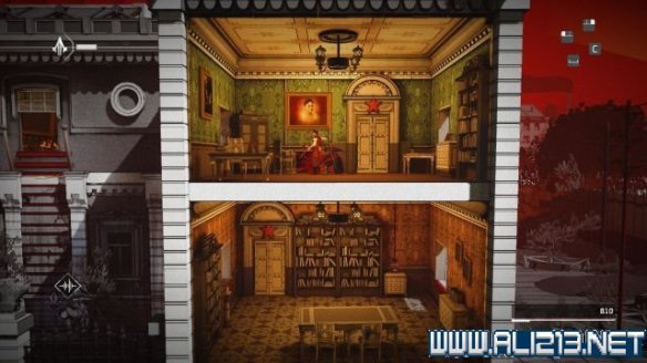 step10.从大楼左侧的外墙落到地面,然后从窗户进入到一层内,快速钻进走廊的藏身处,在藏身处左端吹一下口哨,然后移动至右侧,并前往右边的房间内,在这个房间内可找到一个宝物抽屉从中可以拿到传家宝(次要目标2/3)。