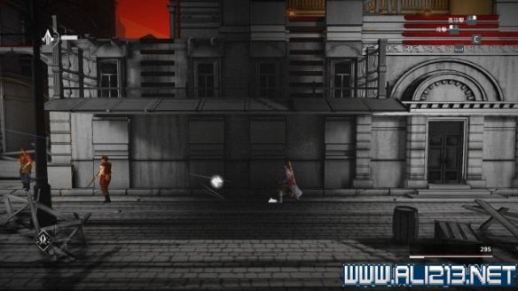 step14.在走廊内会看见那名女孩,这时候会出现三名守卫分别从左侧门以及中部的走廊对她发动攻击,按2键换出枪支射杀3人,然后从左侧的门会出现一名守卫,上前与之交战,需要先使用C键进行格挡后再对其反攻。