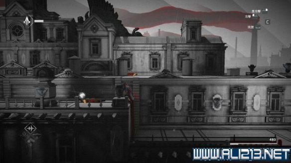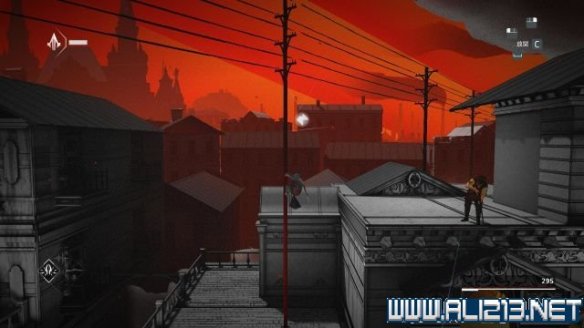 沿着屋顶去到左侧,可以发现一条红色边缘,沿着它可以走往近方的屋顶上。