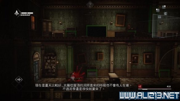 step12.从阁楼落到房子的二层,这里有两层,每层有两名敌人,一人是巡逻一人是观察。在右侧二层通往一层的通风管道内可以拿到animus碎片(碎片6/6)。