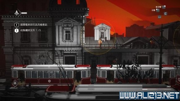 来到第一个轻轨车站的顶盖上,趁右上方的守卫不注意,落到轻轨车顶上可以拿到一颗animus碎片(碎片2/11)。