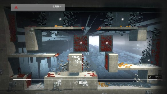 分别通过3个掩体,并从最后一个掩体处,到达梯子处,从梯子一直移至最右端,下方能收集到Animus碎片。