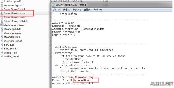 记事本方式打开游戏目录下面的SmartSteamEmu.ini(或SmartSteamEmu),找到=AccountName,修改等号后的英文保存。只支持英文和数字名称。