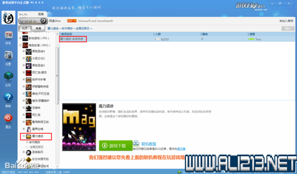 先点击"角色扮演" 就看到 "魔力遗迹" 点击进去. "合作竞技"-全国互联区" 会看到一个房间" 魔力遗迹多线专房" 点击进去就可以了.如图.