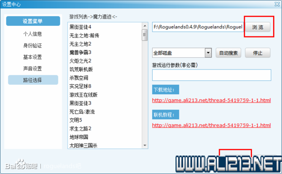 点击"浏览" 选择 你的游戏文件夹 里的 "roguelands.exe"