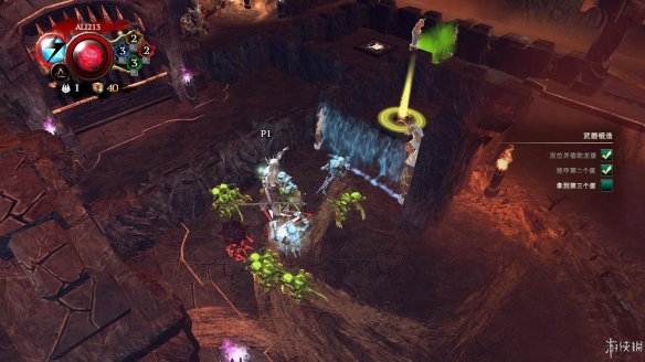 5,接着到达仆从喷泉的地方,以后的关卡内也会常见这东西,攻击它会产出不同颜色的能量块,对应的是不同颜色的仆从,是个补充仆从的地方。