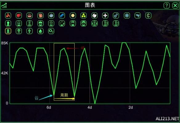 峰:1.也就是你一周期内你存储的最高电量 这个和你的电池总量比较 可以知道你的发电机建的够不够 比如像下图 我电池可以容纳85k 而一周期内我最高73K左右 那么可以加放电机了