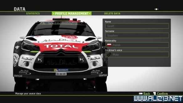 账号管理:修改玩家车手的名字、国籍以及领航员的声线(可选择男或女)。